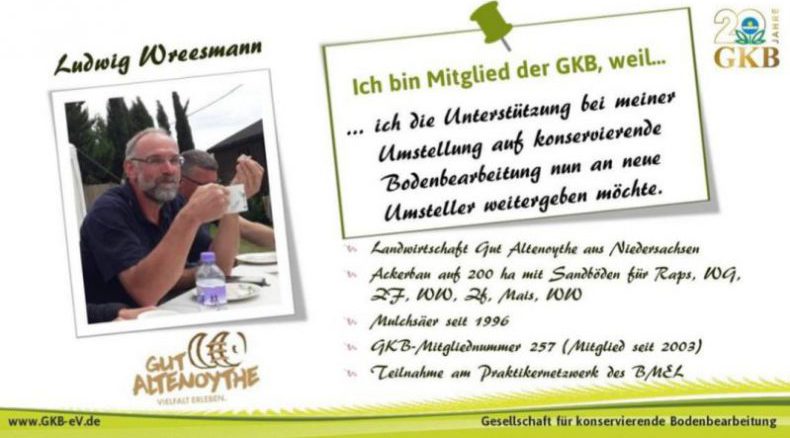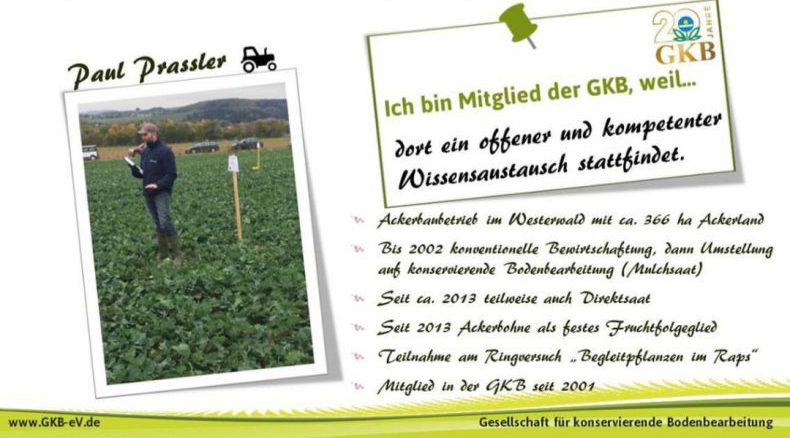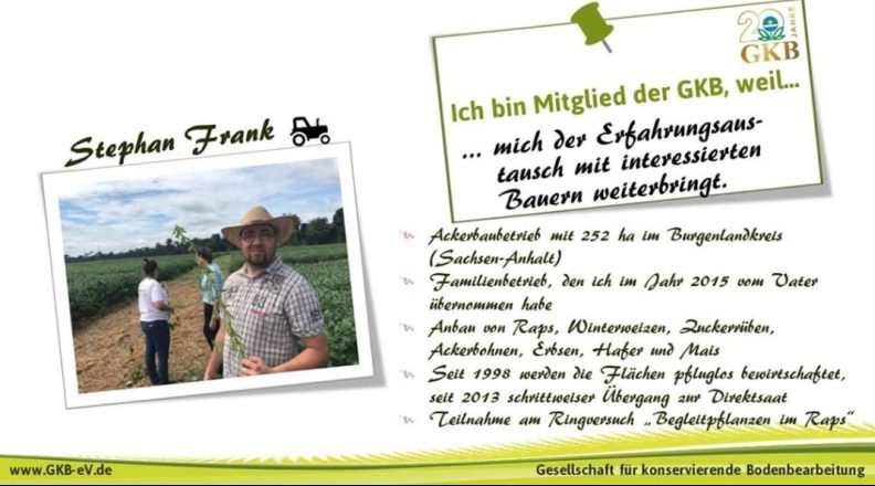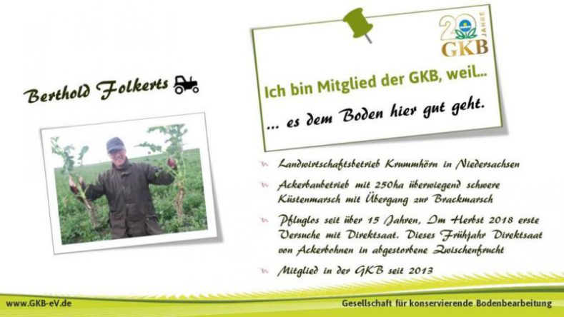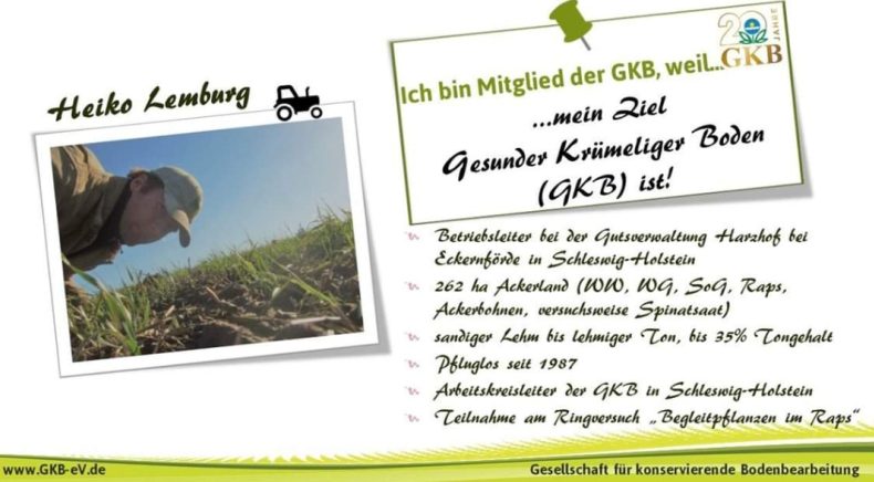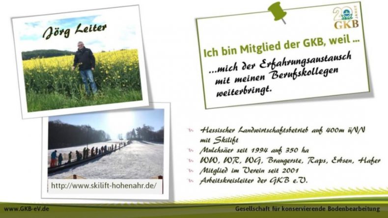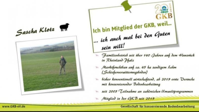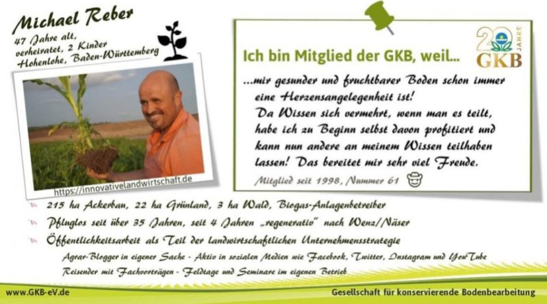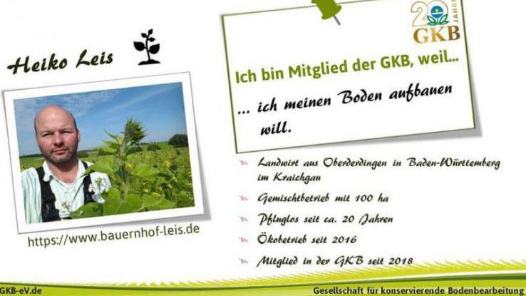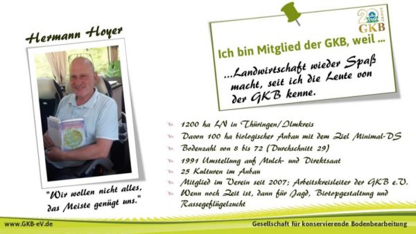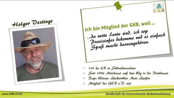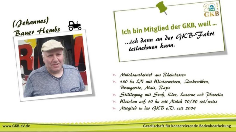 20 Jahre GKB e.V. – im Jubiläumsjahr Mitglied der GKB Heute stellt sich (Johannes) Bauer Hembs vor und im Jubiläumsjahr stellen sich Mitglieder unserer Gesellschaft per Steckbrief vor und gebenstellen sich Mitglieder unserer Gesellschaft per Steckbrief vor und geben ein Statement, warum sie Mitglied im Verein sind. Heute stellt sich (Johannes) Bauer Hembs vor. Bauer Hembs betreibt einen Mulchsaatbetrieb in Rheinhessen mit Acker- und Weinbau und ist seit Mitglied der GKB. seit 2004 Mitglied der GKB Heute stellt sich (Johannes) Bauer Hembs vor und im Jubiläumsjahr stellen sich Mitglieder unserer Gesellschaft per Steckbrief vor und geben ein Statement, warum sie Mitglied im Verein sind.