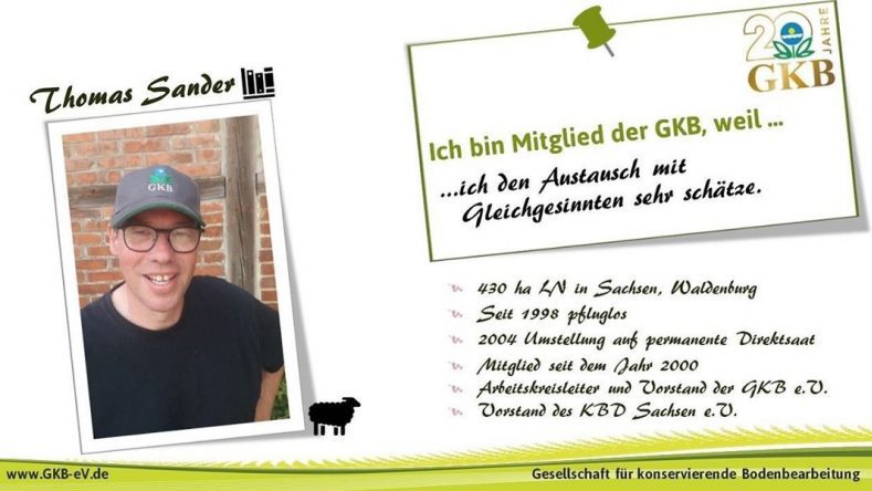 Landwirt Thomas Sander aus Sachsen zählt zu den Direktsaat-Pionieren im Deutschland. Sein Wissen, seine Erfahrungen und seine Begeisterung für den Beruf und die Direktsaat teilt er gerne unter seinen Berufskollegen. Von sich selber sagt er, dass er im stetigen Lernprozess ist.