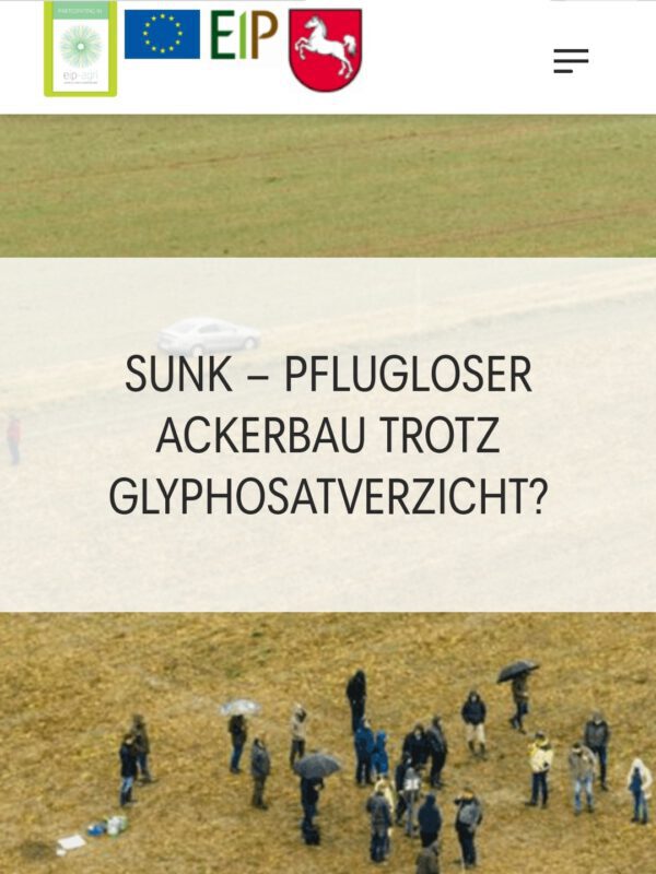 - Das neue EIP-Projekt „Smarte UNkraut Kontrolle, welches auf zwei Mitgliedsbetrieben der GKB e.V. in Niedersachsen umgesetzt wird, soll eine Strategie zu alternativen Anbausystemen bei Glyphosatverzicht entwickeln. Dadurch soll erreicht werden, weiterhin pfluglosen Ackerbau und Direktsaat mit allen seinen Vorteilen betreiben zu können.