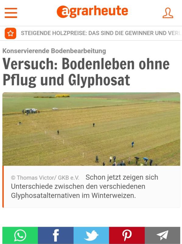 Mehr InformationenEin Projektziel – zwei Landwirte, Experten der GKB e.V. und eine Fragestellung: Wie können wir zukünftig im pfluglosen Ackerbau ohne Glyphosat Unkraut kontrollieren?