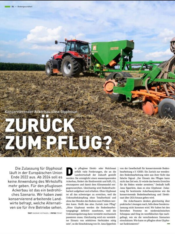 Für die Landwirte der GKB e.V. und alle pfluglos wirtschaftenden Betriebe stellt sich zukünftig die Frage nach einer praktikablen, ökonomischen und ökologisch sinnvollen Ackerbaustrategie bei Glyphosatverzicht.